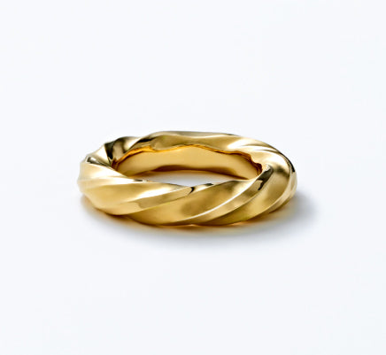 流れるような曲面のTWISTリング。ボリュームタイプ。あらゆる方向に面があり、複雑で美しい輝きを放ちます。全体には梨地仕上げを、峰のみ鏡面加工を施しました。落ち着いた中にも華やかさがあるリングです。